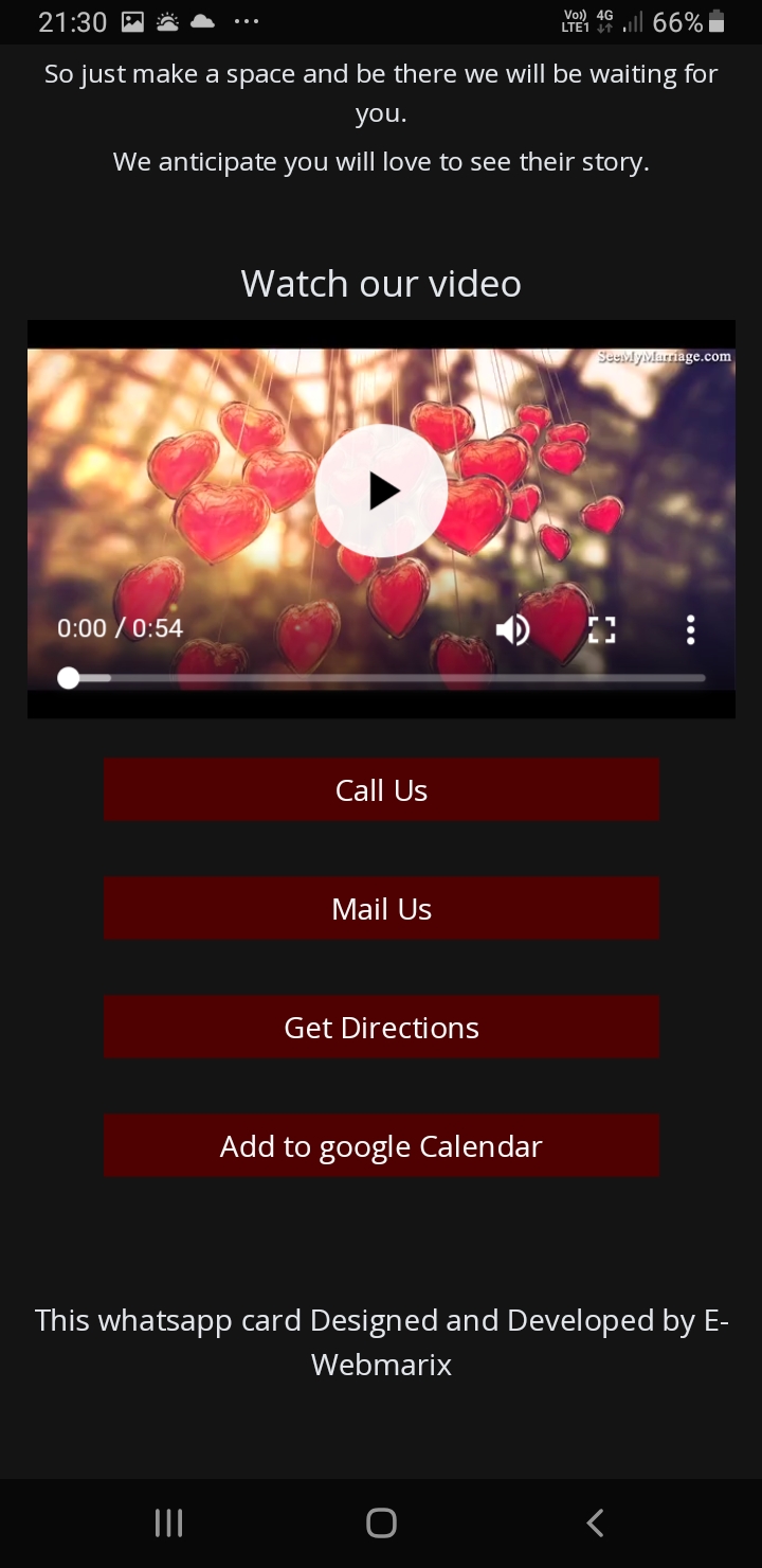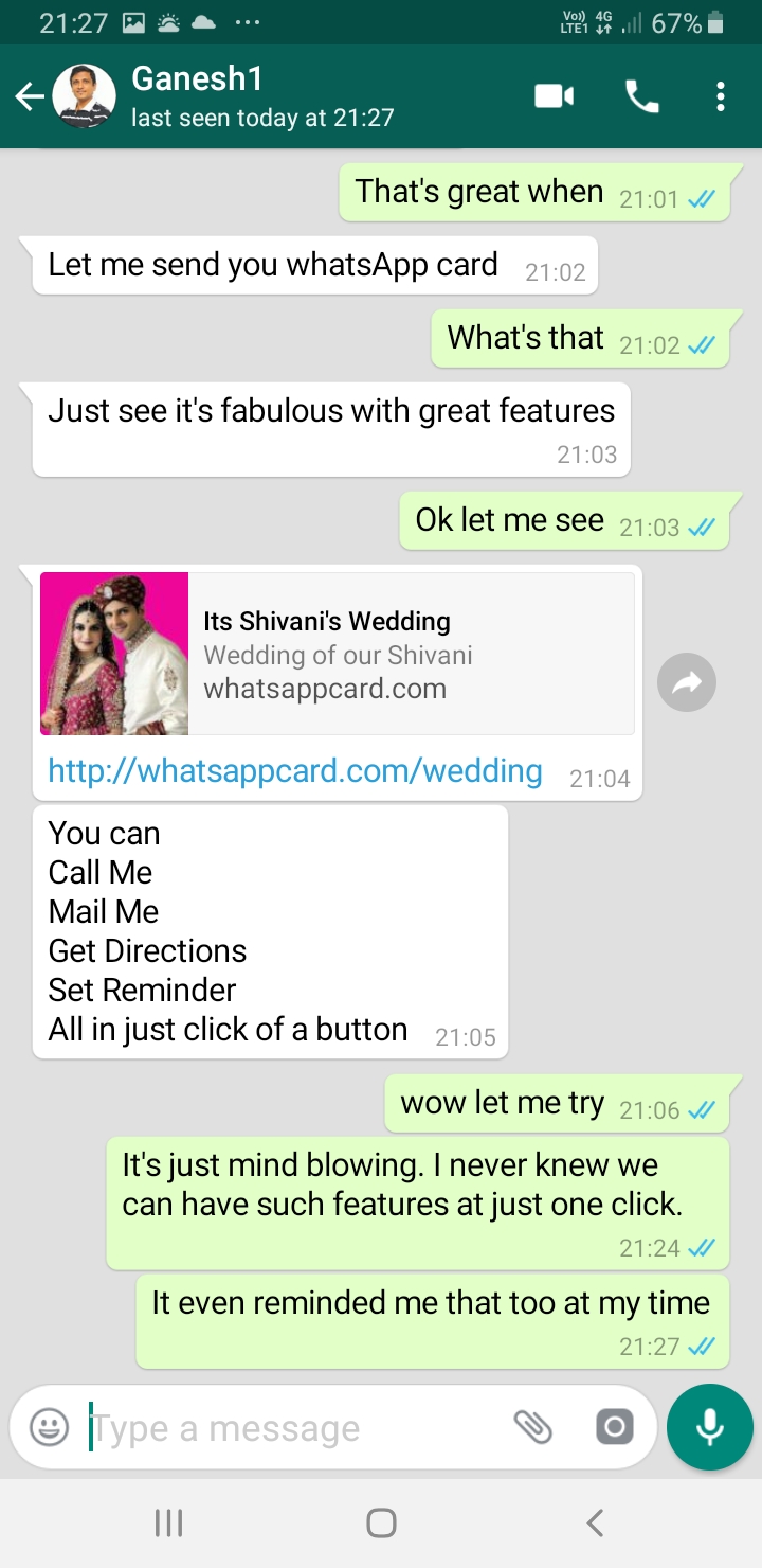 When you send the WhatsApp Card to your guests its just not only a professional approach but keeps your guests engrossed in your upcoming event. They get a chance to see the highlights in advance be it a slide show or video or audio or any other thing. They even get notified before the schedule and have the directions in place. They can even call you, mail you before your meetings.